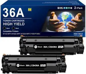 36A Black Toner Cartridge Compatible HP 36A Toner Replacement for Laser M1522n MFP M1523nf MFP M1120 MFP P1505 P150n Printer 2-Pack ( 2 Black ) CB436A