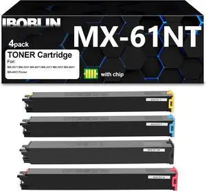 MX61NT MX-61NT MX60NT MX-60NT Toner Cartridge with Chip Replacement for Sharp MX-3071 MX-3551 MX-4071 MX-3571 MX-3051 MX-2651 MX-4051 Printer(4PacksBlack Yellow Cyan Magenta)