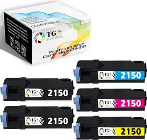 TG Imaging 5-Pack Compatible Replacement for Dell 2150 2155 Toner Cartridge Work with 2150 2155 2150cdn 2150cn 2155cdn 2155cn Printer, 2xBlack 1xCyan 1xMagenta 1xYellow
