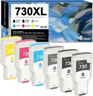 730 Ink Cartridges 300ml High Capacity (6 Pack) Replacement for HP 730 Ink Cartridge P2V71A P2V68A P2V69A P2V70A P2V72A P2V73A Compatible for HP Designjet T1700/T1600/T2600 Printer