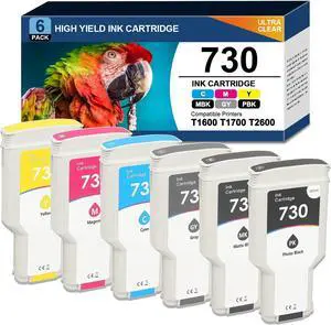 730 Ink Cartridges P2V68A P2V69A P2V70A P2V71A P2V72A P2V73A Replacement for HP 730 Ink Cartridge for DesignJet T1600 T1700 T2600 Printer Ink (6-Pack 300ml)