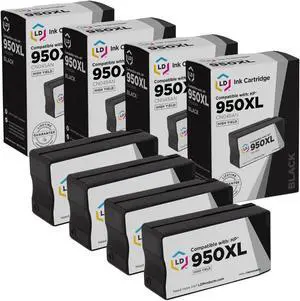 LD Products Compatible Ink Cartridge Replacement for HP 950XL CN045AN High Yield (Black, 4-Pack)