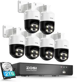 ZOSI 4K PoE Security Camera System with AI Face Person Vehicle Detection, 6 x 8MP 4K Outdoor Auto Tracking PT PoE Camera with Floodlights and 2-Way Audio, 8CH 8MP NVR with 2TB HDD (16CH Expandable)