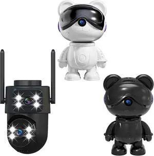 2K Indoor/Outdoor Security Camera, Cute Bear Design, Dual-Band WiFi, Motion Detection, Night Vision, Two-Way Audio