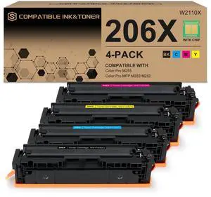 206X 206A High Yield Toner Cartridges 4 Pack (with Chip) Works with HP Color Pro MFP M283fdw M283cdw, Pro M255dw M255nw, MFP M282nw M283 M282 M255 Printer ^^ W2110X W2111X W2112X W2113X 206A W2110A