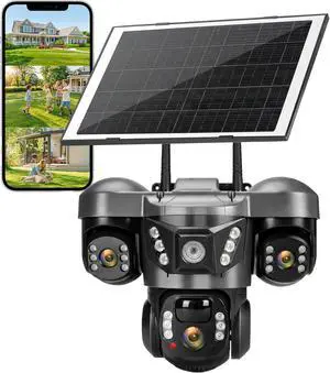 Estink 2K Dual Lens Solar Security Camera, Wireless Outdoor 355 PTZ AI Human Motion Detection, Solar Panel & Battery Powered, IP66 for All Weather