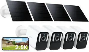 Rraycom 4Pack Security Cameras Wireless Outdoor for Home Security, 2K Battery Powered WiFi AI Motion Detection Spotlight Siren Alarm Security Camera, Color Night Vision, 2-Way Talk, Cloud/SD, w/Alexa