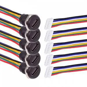 Chenyang 5pcs/set DIY OEM Type C Female Socket to 6Pin Header Cable Pitch=2.0mm Panel Mount DC 5V/20V PD Power CN-015-6P