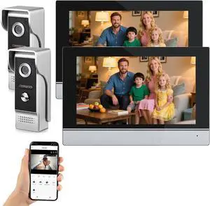 Wired Apartment Video Intercom System Tuya WiFi 7 Inch Touch Screen 1080P Doorbell Camera Intelligent Tuya APP Intercom Kit with Motion Detection,Anti-tamper Alarm for Home (2 doorbell + 2 monitor)