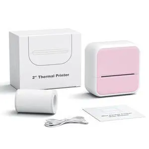 Mini Thermal Label Printer Portable Bluetooth, Sticker Maker, Barcode & Label Printer for Commercial Home Office, Supports iOS/Android, Compatible with Thermal Paper, Gift with 1 Roll Paper