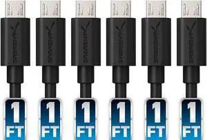 Sabrent [6-Pack] 22AWG Premium 1ft Micro USB Cables High Speed USB 2.0 A Male to Micro B Sync and Charge Cables [Black] (CB-UM61)