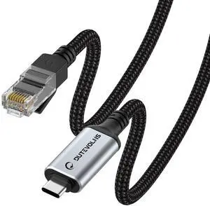 USB C to Ethernet Cable 10FT, Type C to RJ45 Nylon Cord, Gigabit Directly Connected, Compatible for MacBook Pro, iPad Pro, Smartphone, Laptop, PC