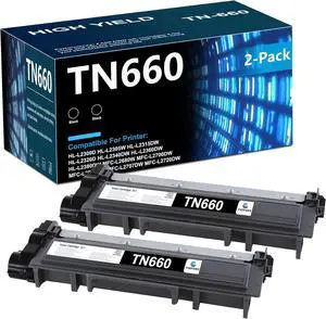 TN660 Black High Yield Toner Cartridge (2-Pack) - Replacement for Brother TN660 Toner Cartridge for HL-L2300D HL-L2305W HL-L2315DW HL-L2320D HL-L2340DW HL-L2360DW HL-L2380DW MFC-L2680W Printer