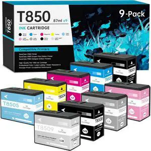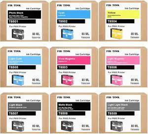 T850 Ink Cartridge UltraChrome HD T8501 T8502 T8503 T8504 T8505 T8506 T8507 T8508 T8509 Compatible for Surecolor P800 Printer (9 Pack)