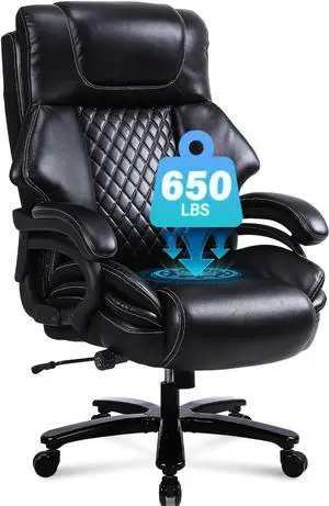Big and Tall Office Chair for Heavy People 650lbs Heavy Duty Executive Chair with Adjustable Lumbar Support, Wide Seat, Ergonomic High-Back Leather Desk Chair for Adults 8 Hours Daliy Work