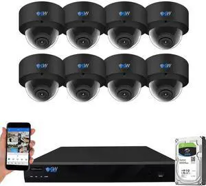 GW Security 16 Channel 12MP NVR UltraHD 4K Smart AI Human/Cars Detection PoE Security Camera System with 8 x 8MP Waterproof Microphone 135° Wide Angle Outdoor Indoor Dome Cameras (Black)