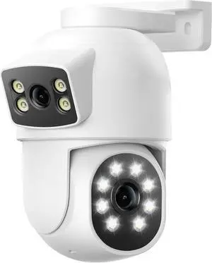 Camcamp Dual Lens Security Camera Outdoor, 2K Full HD Video, 360° View Pan/Tilt Surveillance & Security Cameras with Color Night Vision, Easy to Install, PIR Alarm