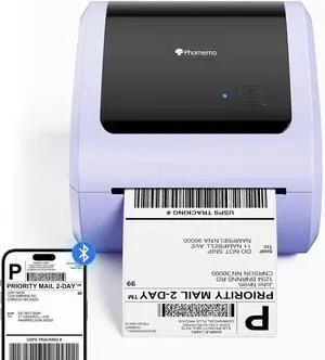 JVFYI Phomemo D520BT Thermal Shipping Label Printer | Wireless Bluetooth 4x6 Label Printer for Small Business Purple