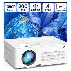 1080P Projector, 1920X1080 PFHD Resolution, Ull HD Movie Projector Outdoor Movies, Adaptive Technology, Support 2.4G 5G WIFI and BT 5.0, HIFI Stereo with Cooling Fan for Home, Outdoor(USA)