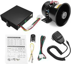 200W 12V 9 Tone Emergency Police Siren System, Black Steel Speaker Horn, Handheld Microphone, for Emergency Vehicles Truck Firefighters Ambulance