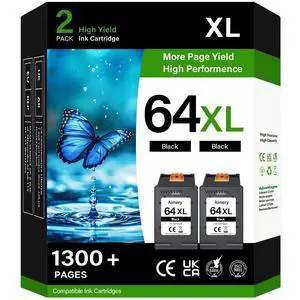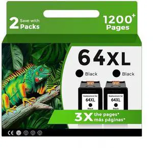 64XL Black Ink Cartridge (2 Pack) Replacement for HP Ink 64 for HP 64 Ink HP64 64 XL Black Ink Cartridge for HP Printers Envy Photo 7855 7858 7155 7158 6255 Inspire 7255e 7955e 7958e Tango X Terra