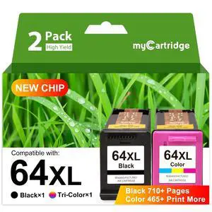 myCartridge 64XL Black and Color Ink Cartridges Combo Pack Remanufactured Replacement for HP Ink 64 64XL Ink for Envy Photo 7855 7900 7155 7858 7100 7120 7800 6252 6255 Tango Printer Ink 64 (2-Pack)