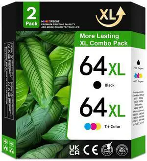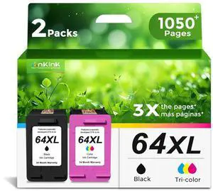 64XL Ink Cartridges Replacement for HP 64 Ink XL (Color 2-Pack) HP64 HP64xl use with 7858 7855 7120 7155 7158 7164 6255 6252 6232 Envy Inspire 7955e Tango X Printers