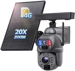 INQMEGA Metal 20X Zoom 6MP Dual-Lens Security Solar Cameras, 4G Cellular 20000mA Battery Powered Camera with 10W Solar Panel, PIR Motion Detection, Color Night Vision, Include 4G Card