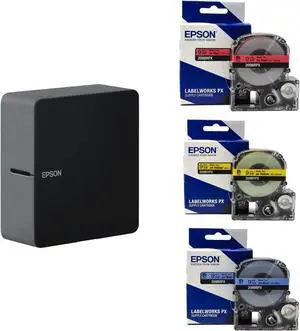 LABELWORKS Epson LW-C610PX-BLK Elementary Bundle - Label Maker & Black on Blue and Black on Red and Black on Yellow Tape