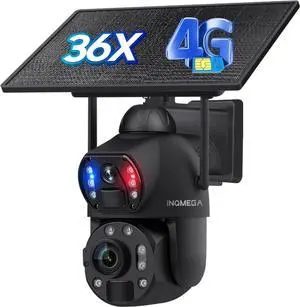 INQMEGA Metal 4G LTE Cellular Solar Camera, 36X Optical Zoom, Solar Power with 20000mAh Battery and 10W Panel, PIR Motion Detection, Spotlight Siren, and 6MP Dual Lens