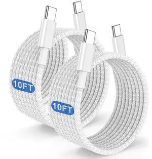 USB C to USB C 3.1 Cable 10FT (2-Pack), USB 3.1 Gen 2 Cable, Supports 4K@60Hz Video, 100W Charging, 10Gbps Data Transfer, Compatible with MacBook Pro/Air, iPad Pro, iPhone 16/15 Series, Galaxy Series