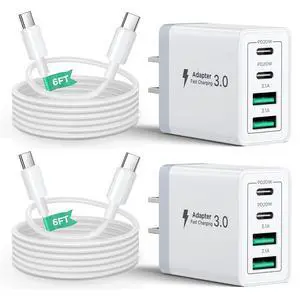 • Specifications: Lightweight Design, 4 Port Desgin, Fast Charging, 40 watts, 2 Pack USB C Wall Charger+2M*2 PDC Cable (White)