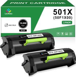 LeciRoba 10000 Page-Yield 50F1X00 501X Toner Cartridge Compatible Replacement for Lexmark 501X 50F1X00 for MS410dn MS510dn MS610dn MS610dte MS610dtn MS415dn (2-Pack)