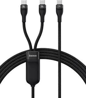 XKCZ 4 in 1 USB C Cable with Wattage Display, 240W Flat Nylon Braided Multi Charge Cable with Data Sync, USB C Charging Cord Combo Type C/USB A/L Port for iPhone/iPad/Samsung/Laptop, 3FT