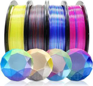 Reprapper PLA Filament 4 X 250g Color Pack, Triple Color Filament Coextrusion PLA 1.75mm for 3D Printer, 4 Spools Silk Rose/Blue/Green, red-blue1-gold, Purple/Blue/Yellow, Gold/Copper/Black