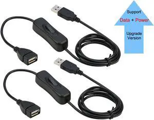 RIITOP USB Switch On Off Data and Power Extension Cable Adapter 3ft For iOS System, Raspberry Pi (2Pack)