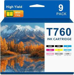 Remanufactured T760 Ink Cartridge Ultrachrome T7601 T7602 T7603 T7604 T7605 T7606 T7607 T7608 T7609 Ink Work for Surecolor P600 Inkjet Printer Ink, T760 760 Ink 9-Pack PBK,MBK,C,VM,Y,VLM,LC,LBK,LLBK