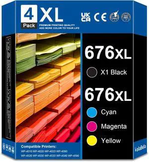 676XL High Yield Ink Cartridges Compatible Replacement for 676 XL T676XL Ink Cartridge with WorkForce Pro WP-4020 WP-4010 WP-4090 WP-4023 WP-4520 WP-4530 WP-4533 WP-4540 WP-4590 Printer (4-Pack)