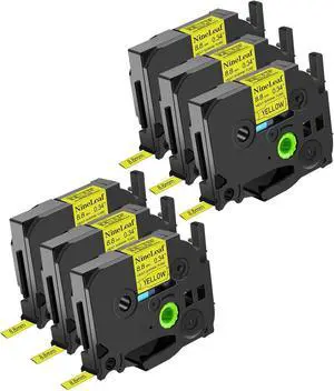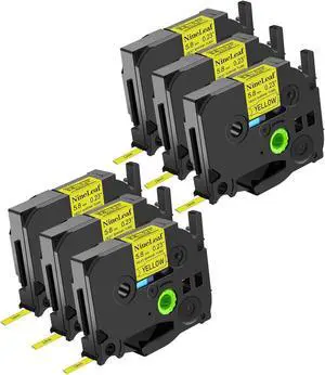 NineLeaf 6PK Compatible for Ptouch HSe-621 HSe621 HS-621 HS621 8.8mm 0.34 Black on Yellow Heat Shrink Tubes for PT-P700 PT-P750W PT-1000BM PT-1010 Label Maker Tapes