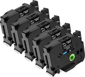 5x TZe-251 24mm + 5x TZe-241 18mm Label Maker Tape Compatible with Brother P Touch Label Tape TZe TZ Tape Laminated White 18mm 24mm for Brother PT-D600 PT-D610BT PT-P710BT PT-P700 PT- P910BT, Total 10