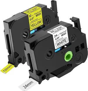 Compatible for Brother P-Touch Label Maker Tape 10PK TZe-251 TZe251 TZ-251 Black on White 24mm 0.94 inch and 6PK TZe-631 TZe631 Black on Yellow 12mm 0.47 inch Laminated TZe TZ Tape