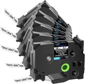 5PK Compatible with Brother Label 18mm STe-141 Mobile Solutions Non-Adhesive Stencil Tape STe141 ST141 Black on Clear 3/4" (18mm) x 9.8' (3m), for PT-D450 PT-E500 PT-D600 Label Maker