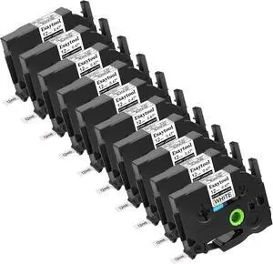 8 X Compatible with P-Touch TZe-131L1 AZE-131L1 TZ-131L1 12mm 0.47'' Black on Starry Clear Rainbow Glitter Bling Embellish Tape Replacement for Ptouch PT-H100 PT-D200 PT-P700 Label Maker