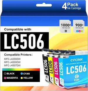 LC506 4-Pack Ink Cartridges Combo Pack Replacement for Brohter LC 506 506 High Yield Ink Cartridges Replacement for Brohter INKvestment 4355, 4555, and 4557 Printers, Black Cyan Magenta Yellow