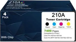 210A 210X 4 Pack Toner Cartridges Replacement for HP 210A 210 W2100X W2100A Compatible with Color Laserje Pro 4201dn 4201dw MFP Pro 4301fdn 4301fdw 4301dw Printers-High Yield (with Chip) - (K/C/M/Y)