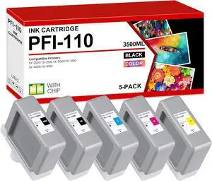 Lezzo PFI-110 Ink Tank 700ml 5-Pack Replacement for Canon PFI-110MBK PFI-110BK PFI-110C PFI-110M PFI-110Y Ink for TX-2000 TX-2100 TX-3000 TX-3100 TX-4000 TX-4100 Printer, PFI-110 Pigment Ink Tank Kit