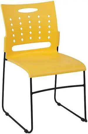 HERCULES Series 881 lb. Capacity Yellow Sled Base Stack Chair with Air-Vent Back