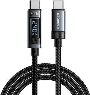 Aluminum Braided 240W USB-C to USB-C Cable with LED Display - 3.3-Feet,1-Pack Black