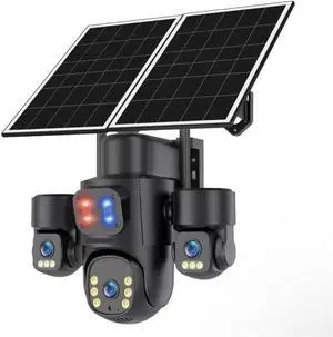 15MP AOV 24/7 Recording 4G Solar Camera 12X Optical Zoom Security Camera Outdoor Three Scree Auto Tracking CCTV(4G Cam Add 64GB)