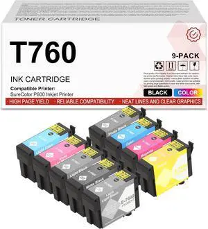 T760 Remanufactured Ink Cartridge T7601 T7602 T7603 T7604 T7605 T7606 T7607 T7608 T7609 Ink Set Replacement for SureColor P600 Printer (9 Pack, PBK/C/M/Y/LC/LM/LBK/MBK/LLBK)